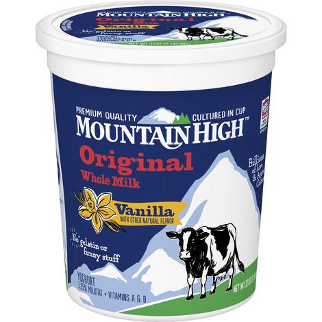 - CONTAINS one 32 oz yogurt container of Mountain High Vanilla Low Fat Yoghurt