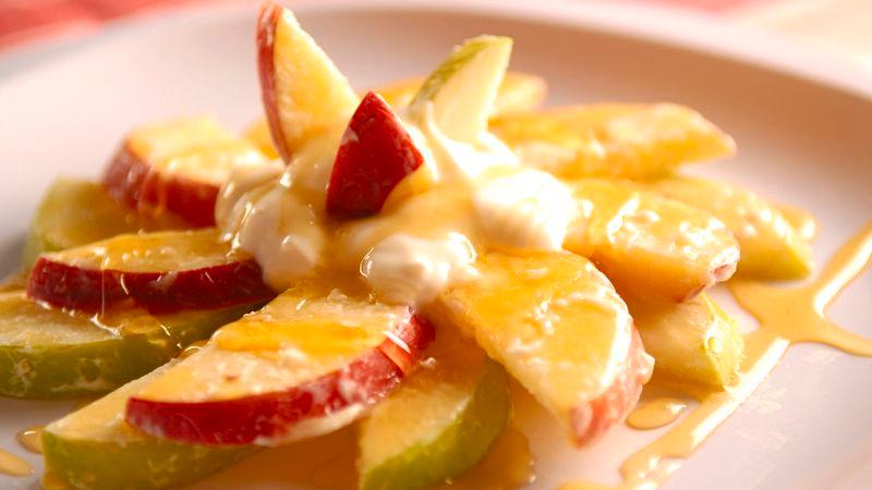 - Arrange apples on individual plates. Drizzle with honey and sprinkle with cinnamon. Serve warm.