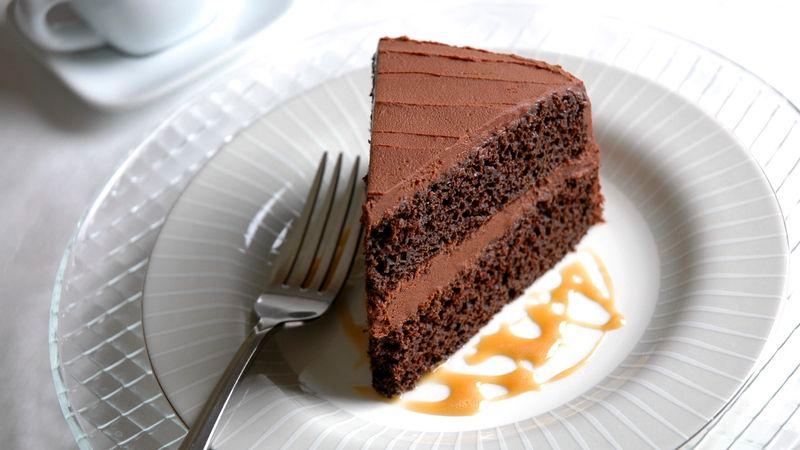 - Grease two 10-inch cake pans; line bottoms with parchment. Grease parchment. Spread batter evenly in pans. Bake at 325°F for 25 to 30 minutes or until toothpick inserted into center of cake comes out clean. Cool 10 minutes; remove from pans to cooling wraps. Carefully peel away parchment. Cool completely, about 1 hour.