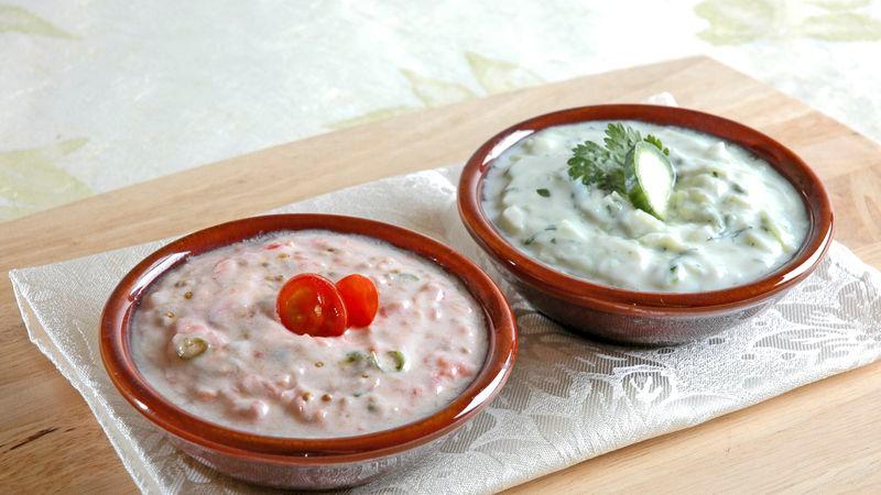 Raitas are whole milk yoghurt dishes used as a counterbalance to spicy or hot foods in Indian cuisine. They come in many flavors and types. This one is especially good with curries and grilled lamb.