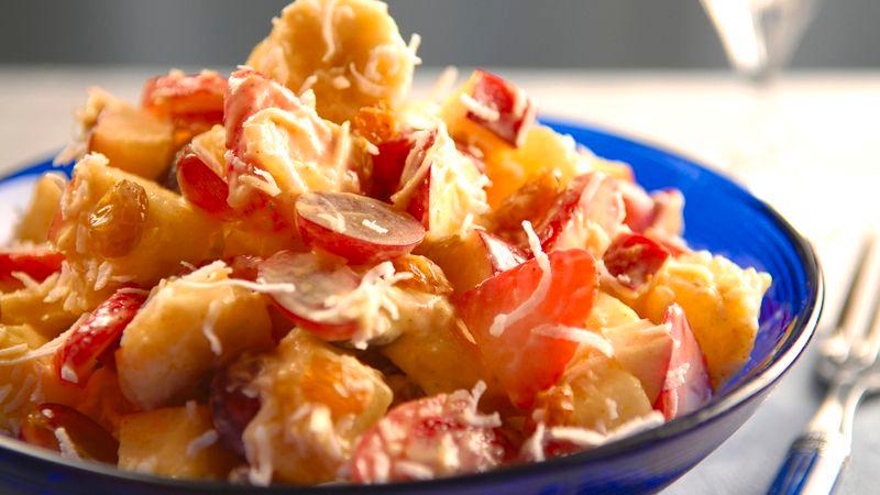 A deliciously different take on the traditional picnic side dish. Any combination of fruit works equally well for this recipe. Experiment with your favorites!