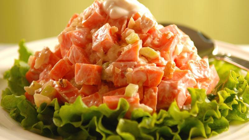 - Place sweet potatoes, celery, pineapple, and walnuts in a large bowl. Toss to combine.