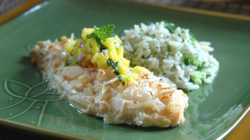 Tilapia with Coconut-Almond Crust & Mango Salsa