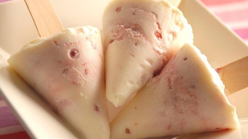 - Spoon some yoghurt into the bottoms of 6 (4-oz) cone-shaped paper cups. Add a small dollop (about one teaspoon) of berry preserves to each. Using a toothpick, swirl the preserves into the yoghurt. Repeat layers to fill cones. Insert a popsicle stick into each, and place cones in cups to keep them upright in the freezer. Freeze until solid, about two hours. Remove cones from cups before serving.