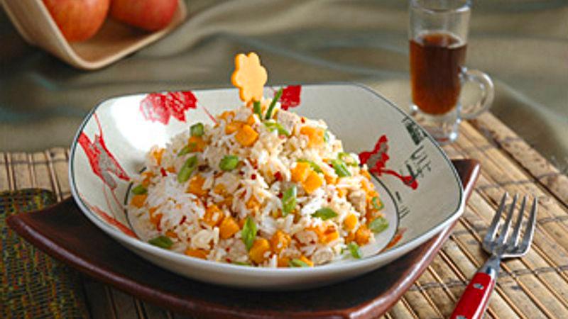 - Meanwhile, In a small bowl, combine cooked rice with the vanilla yoghurt. Fold rice mixture into the pork mixture in skillet. Heat just until warm throughout. Garnish with green onions.