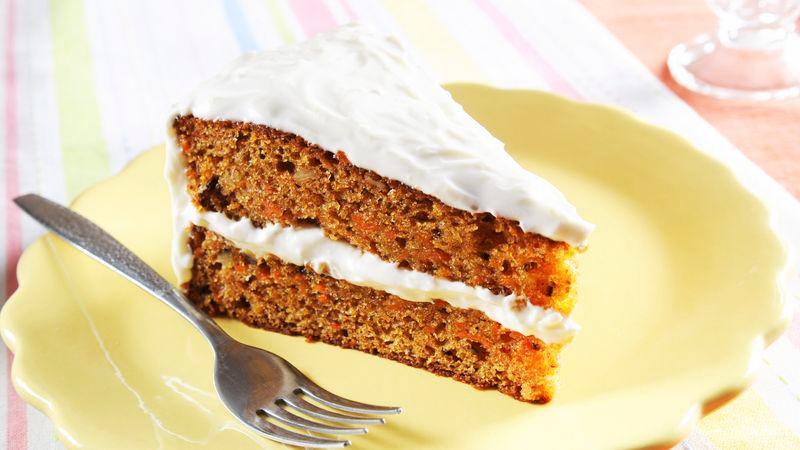 - In a medium bowl, combine sugar, flour, baking powder, cinnamon, cloves, nutmeg, and salt. Mix well. In a large bowl, beat eggs on medium speed, 30 seconds. Beat in oil, yoghurt and carrots on medium speed 30 seconds, scraping bowl constantly. Add the flour mixture to the wet mixture and beat on low speed for 1 minute, scraping bowl occasionally, or until well combined. Stir in walnuts. Grease two 9-inch round cake pans and line bottoms with parchment paper; grease parchment. Evenly distribute batter between the two pans.