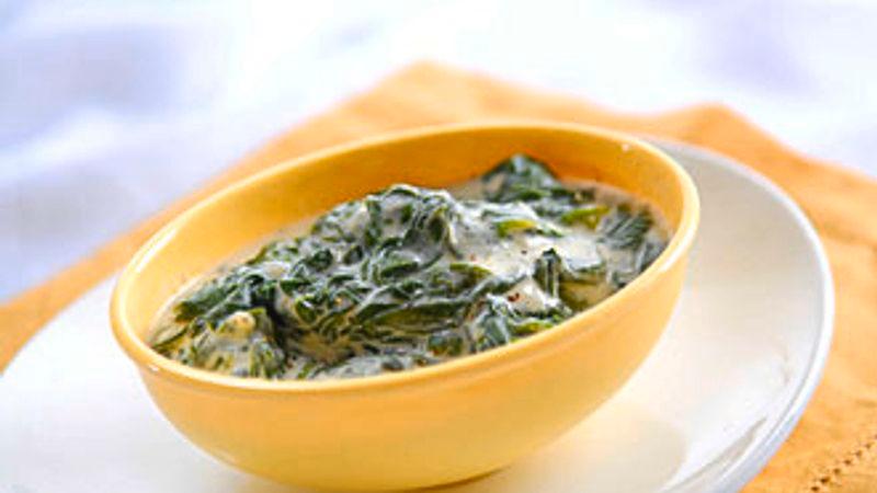 - Return skillet to medium heat. Pour in cream; add garlic. Cook and stir until cream thickens, 1 to 2 minutes. Add Parmesan cheese and yoghurt, mixing well. Add warm, drained spinach and cook for 2 minutes more to warm through. Serve warm.