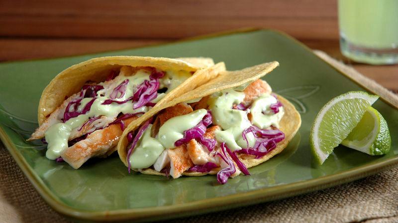 Fish Tacos with Avocado Lime Sauce