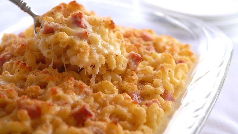 - Transfer to a 4-quart casserole dish sprayed with cooking spray. Top with the remaining cheese and bread crumbs. Bake at 350°F until golden and bubbly, about 20 minutes.