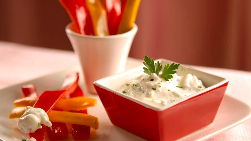 - In a medium bowl, stir all ingredients except vegetables together. Cover and chill at least 30 minutes to blend flavors. Serve with vegetables.