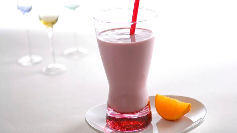 - Place all ingredients except pomegranate seeds in small pitcher. Mix well with whisk. Pour into glasses. Sprinkle with pomegranate seeds. Serve immediately.