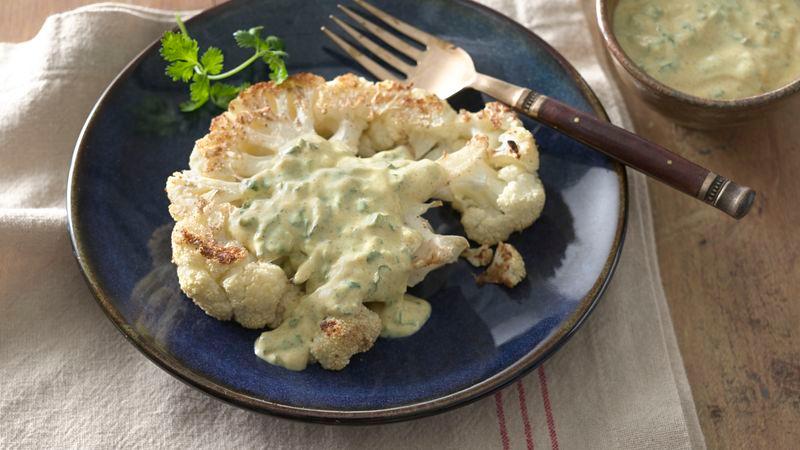 Roasted Cauliflower Steaks with Curried Yoghurt Sauce
