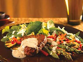 This classic French dish starts with quality steaks crusted with fresh cracked black pepper. We top it with a rich brandy sauce made healthier with yoghurt instead of heavy cream. We use a filet from the wider end of the tenderloin, or you could try a strip steak. If you prefer a thick, round filet mignon, increase cooking time by a few minutes. Any way you slice it, it’s delicious!