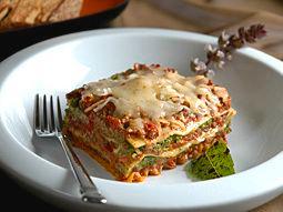 - Cover the bottom of a 13x9-inch baking dish with a layer of lasagna noodles. Spoon 1/3 of the meat sauce over the pasta. Sprinkle with 1/3 of the Parmesan cheese, then spread 1/2 of the ricotta mixture on top. Place another layer of pasta on top and repeat with 1/3 of the meat sauce, 1/3 of the Parmesan, and the remaining ricotta mixture. Place a final layer of pasta on top and cover with the remaining meat sauce and Parmesan cheese.