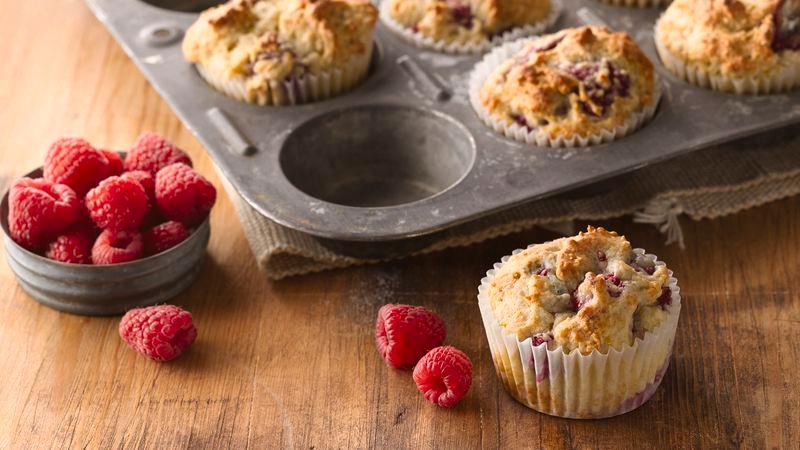 - Combine whole-wheat flour, baking powder, baking soda, and salt in a large bowl. Add the yoghurt mixture, and fold until almost blended. Gently fold in raspberries. Divide the batter (it will be thick) among the muffin cups.